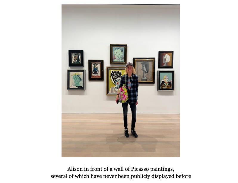 We had an hour and a half together, so we kept it moving. First stop: Brett Robinson’s furniture show at Ashleigh Harrison’s gallery on 70th Street. Then we went to see Picasso: Tête-à-têt. Our last stop was coffee at Via Quadrono, which was a big deal for me. As I revealed in my previous newsletter, I’m a Starbucks loyalist. Fight me in the comments!
