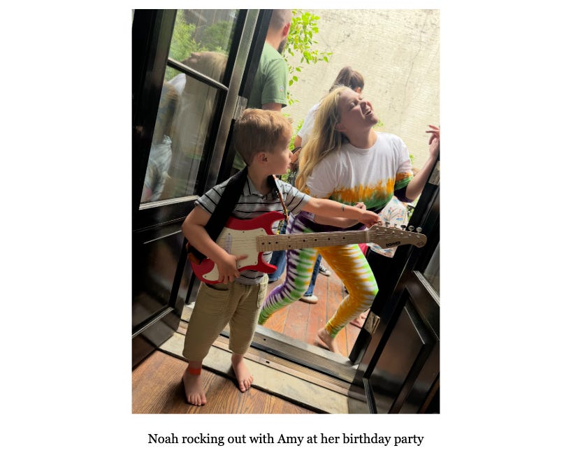 On Sunday, we went to Amy Schumer’s birthday party, which, as expected, featured comedy, chaos, and live music. I thought she said “bring your kids” on the invite just to be polite. She was not. There were breakdancing teachers, face painting, and a live band that gamely let toddlers wail on their instruments. My kids were in heaven. I needed earplugs. But how awesome to make her birthday a kids’ party?