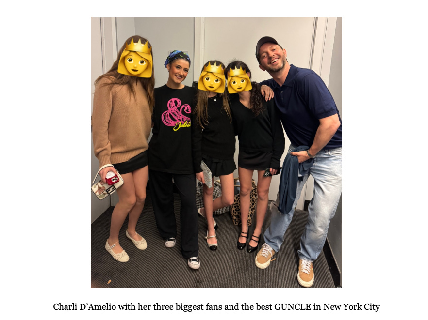 It’s not like I need to come up with a good excuse to see this kind of musical—I was at opening night of Mean Girls on Broadway in 2018, thankyouverymuch—but this outing was to celebrate one of my dearest girlfriends’ daughter’s bat mitzvah. But, yes, I was thrilled to take her so I could show off that I know Charli D’Amelio. Am I out here trying to impress teenagers? Absolutely. Who else will take me clubbin’ in 20 years?