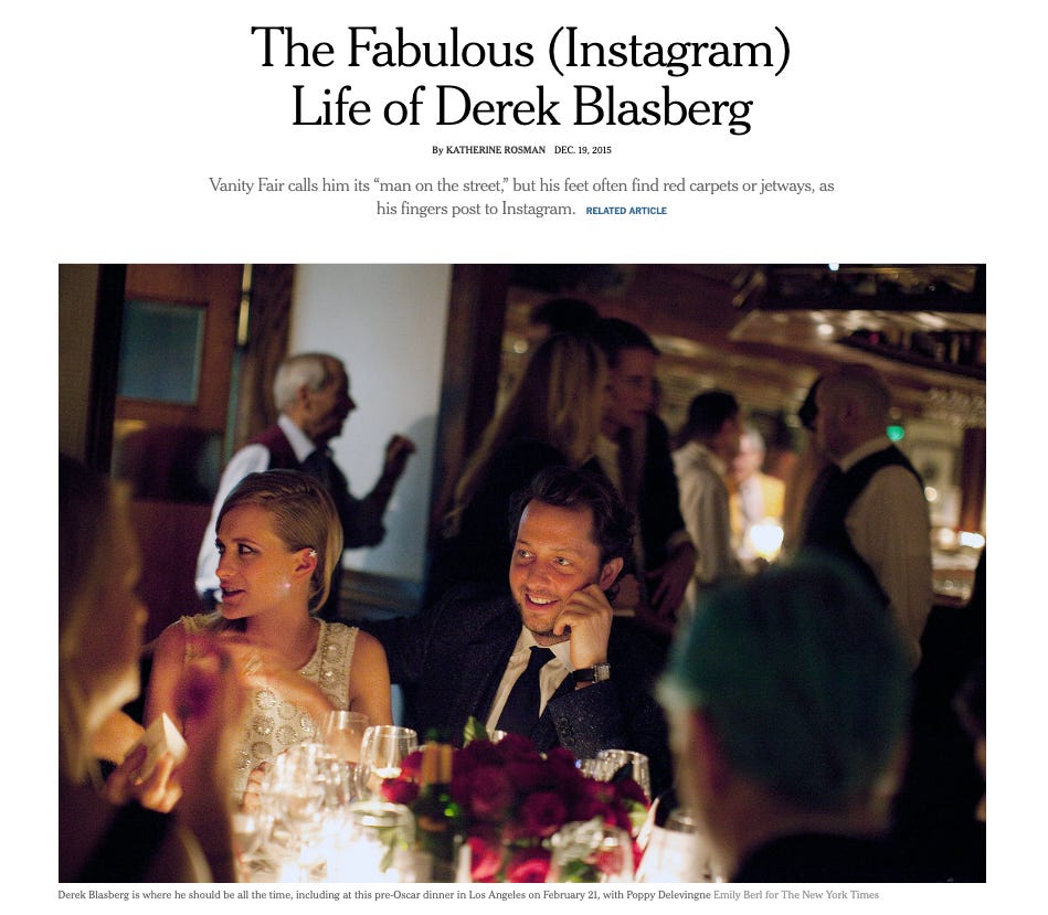 In the mid-2010s, my punning and posting were so prolific that the New York Times did a story called “The Fabulous (Instagram) Life of Derek Blasberg.” (So long ago, media websites didn’t know how to embed social posts yet.)