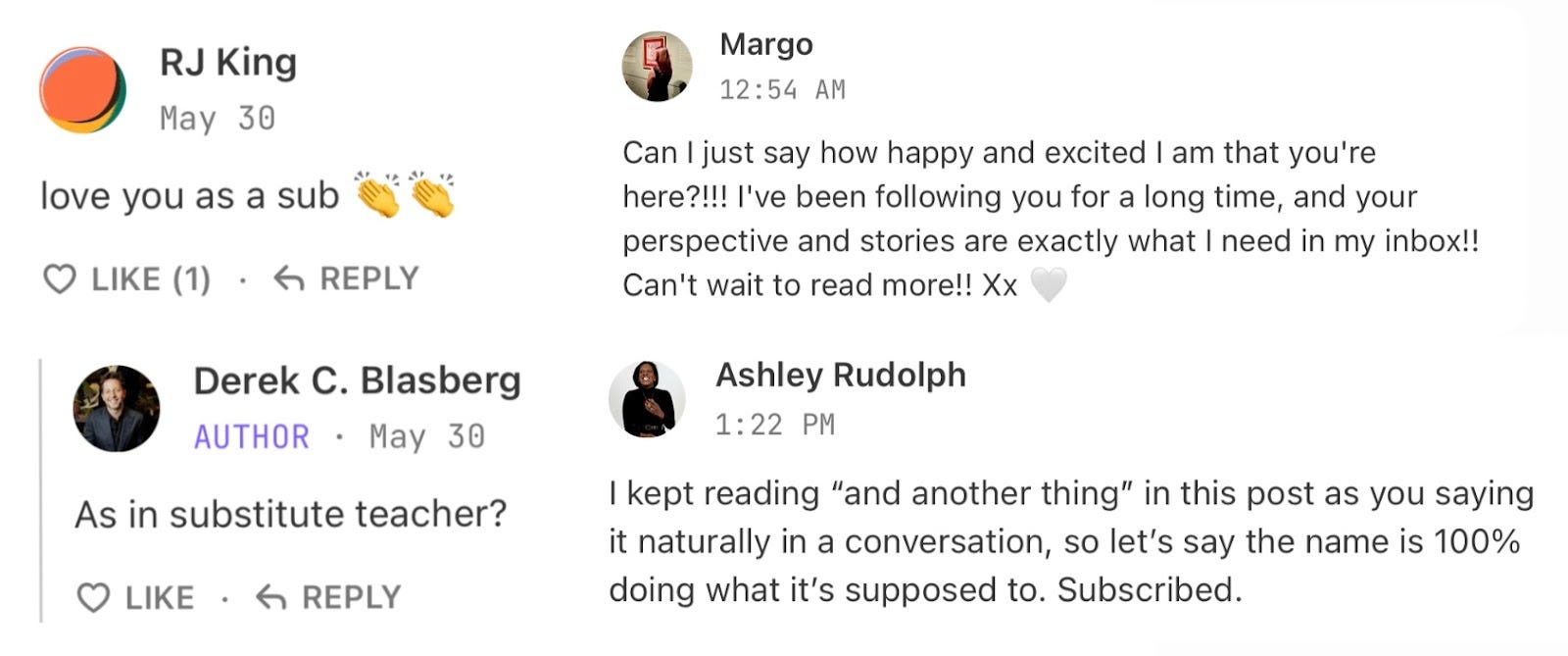 What hooked me is the notion that subscriptions fuel this place, not engagement-based algorithms. Users create real logins, so trolls can’t easily create fake accounts. Actual people are engaging with people’s writing in actual ways. (At least, I think they are? Or else the AI is fabulous in here.) If not always friendly, at least the comment section is clever: more “this reminds me of Joan Didion” than “go kill yourself.” If things get hot in here, we flip a switch so only paid subscribers can leave comments. If a troll is willing to pay me $6 a month to be an asshole, I’m OK with it.
