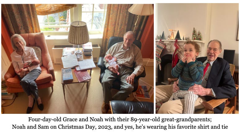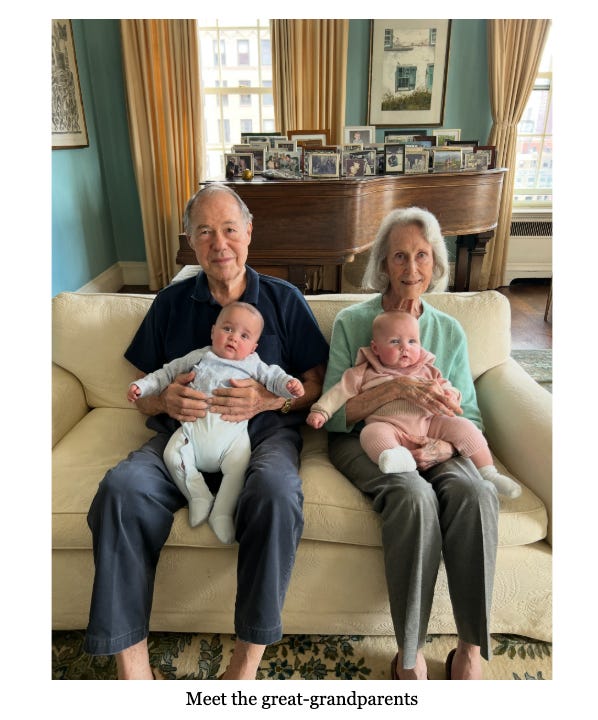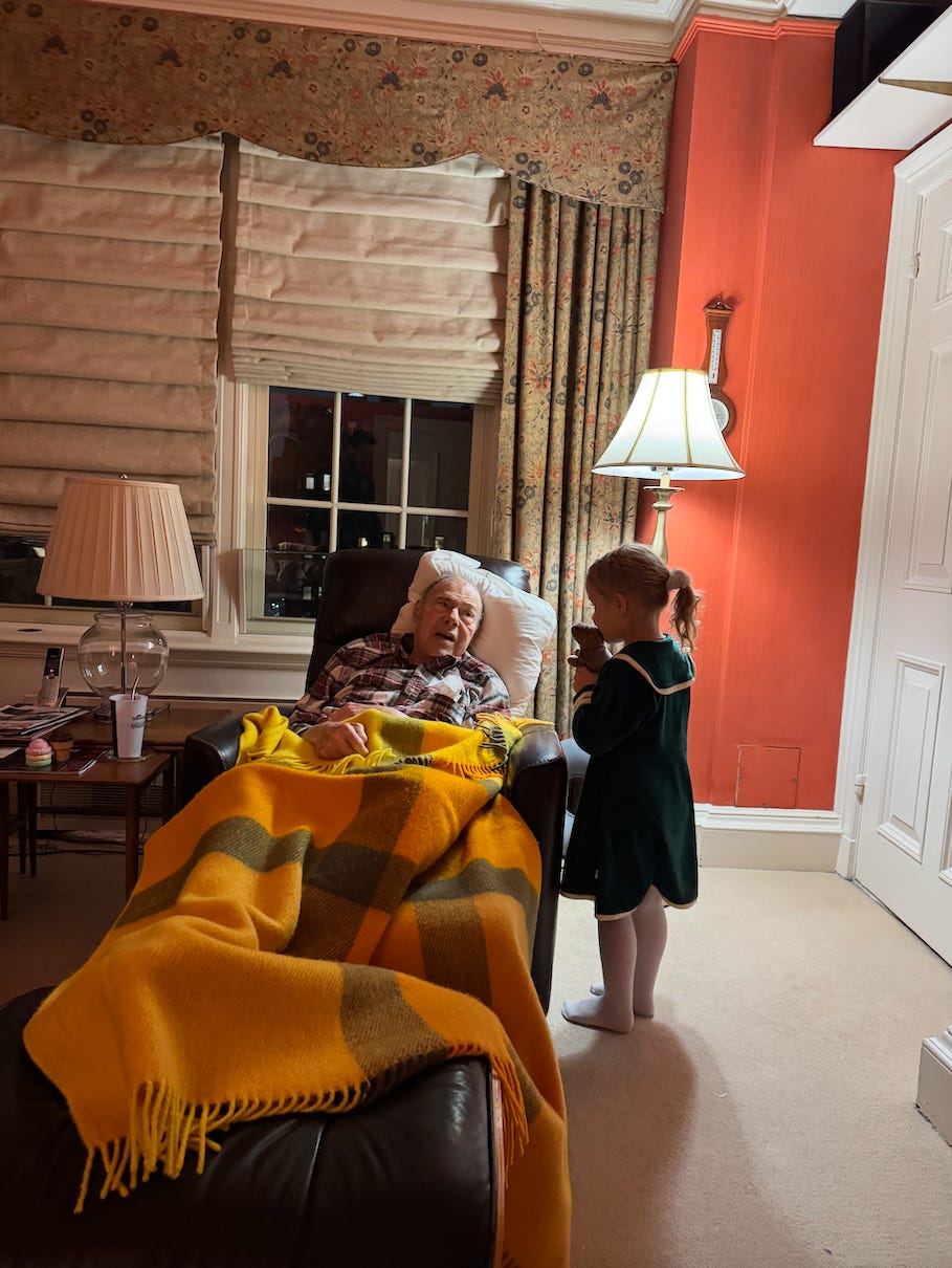More recently, there are pictures of Grace and Noah meeting their great-grandparents for the first time—two joyful, chubby little blobs bouncing on laps in a home where four generations of Butlers had gathered to break bread and share love. After Sally passed, we’d bring the kids up to see Sam every weekend to lift his spirits; they’d sit with him, reading books and playing with his hippo figurines—small, gentle reminders of his presence that still live in their hearts.