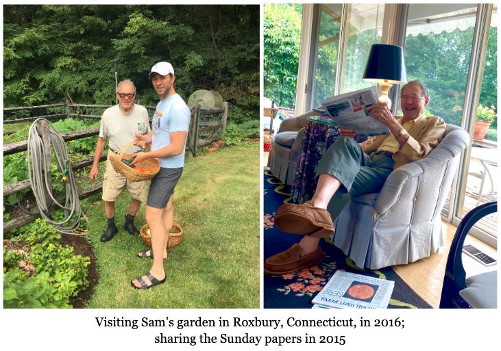 I’m deeply grateful to Sam’s children and grandchildren for letting me feel like part of the family. Being a part of his world was a constant source of inspiration and amusement, a gift of a grandfather.