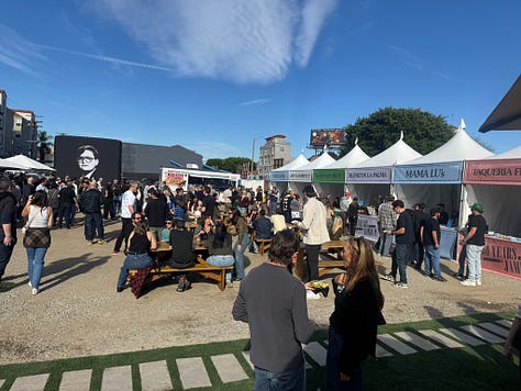 Taking over a vacant lot in Mid-City, he asked his friend DJ D-Nice to spin ’90s hip-hop, and installed food stalls from Kang Kang, Ho Kee Cafe, Mariscos Jalisco, Burritos La Palma, Burger She Wrote, and Taqueria Frontera. He even flew in Jon G’s from North Carolina.