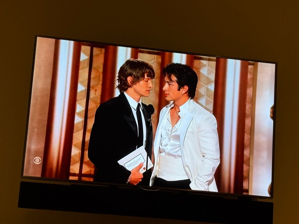 I know you’re here to read about the froth and fabulousness of award season in Hollywood. Still, this sort of continued unchecked aggression by the current administration is shocking and unacceptable. Watching the mayor telling ICE to “get the fuck out of Minnesota” gave me goosebumps. Maybe I should take this out of my diary. Perhaps I shouldn’t. I don’t know—it’s hard to see this stuff, but we can’t ignore it, can we? Fuck it, I’m going to leave it in here.