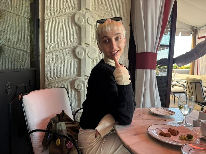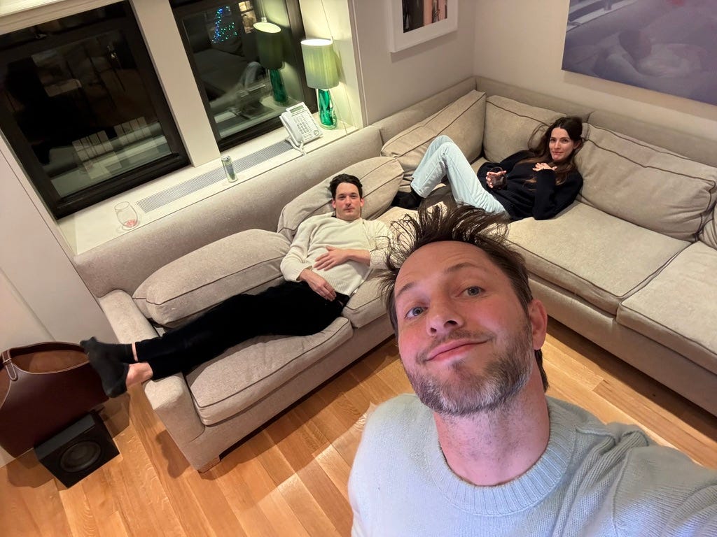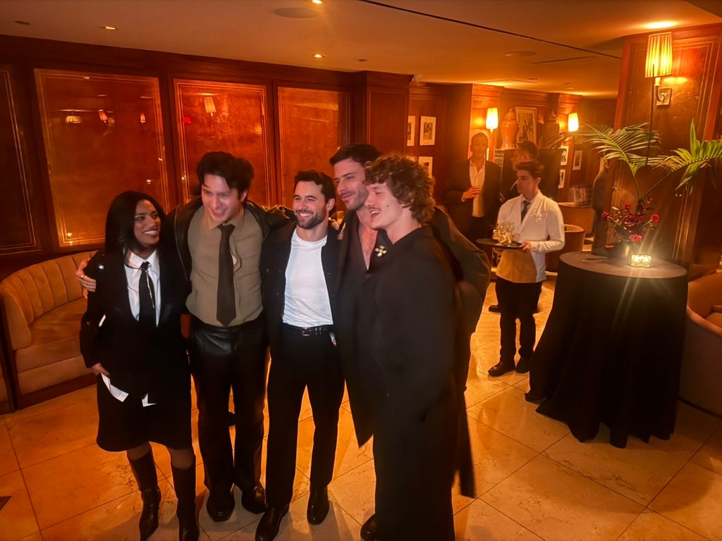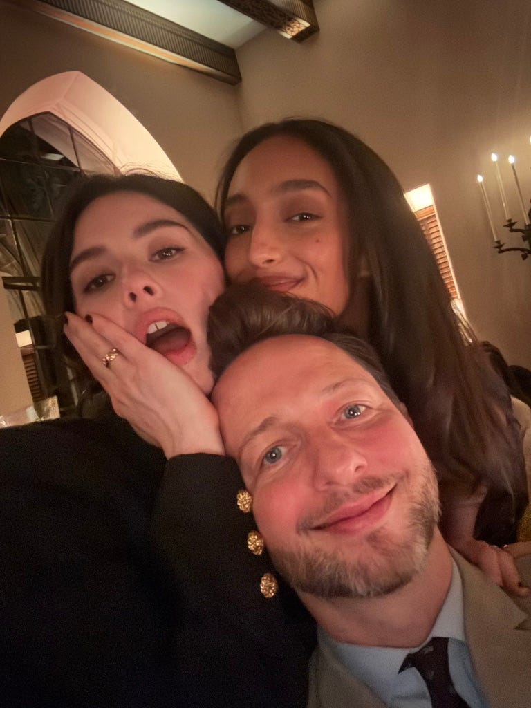 After Helen left, I grabbed a martini with my new friends, Blair and Lauren from Substack, who were in town for the W magazine party the next night. We met at the Tower Bar, which was fabulous people watching: Jessica Alba was in a corner with Keke Palmer; Josh Safdie was near the lobby with some of the other folks from Marty Supreme; Elle Fanning bumped into Vivienne Rohner, who didn’t realize they were in the same restaurant even though they’re dating brothers—Gus and Theo Wenner, respectively.