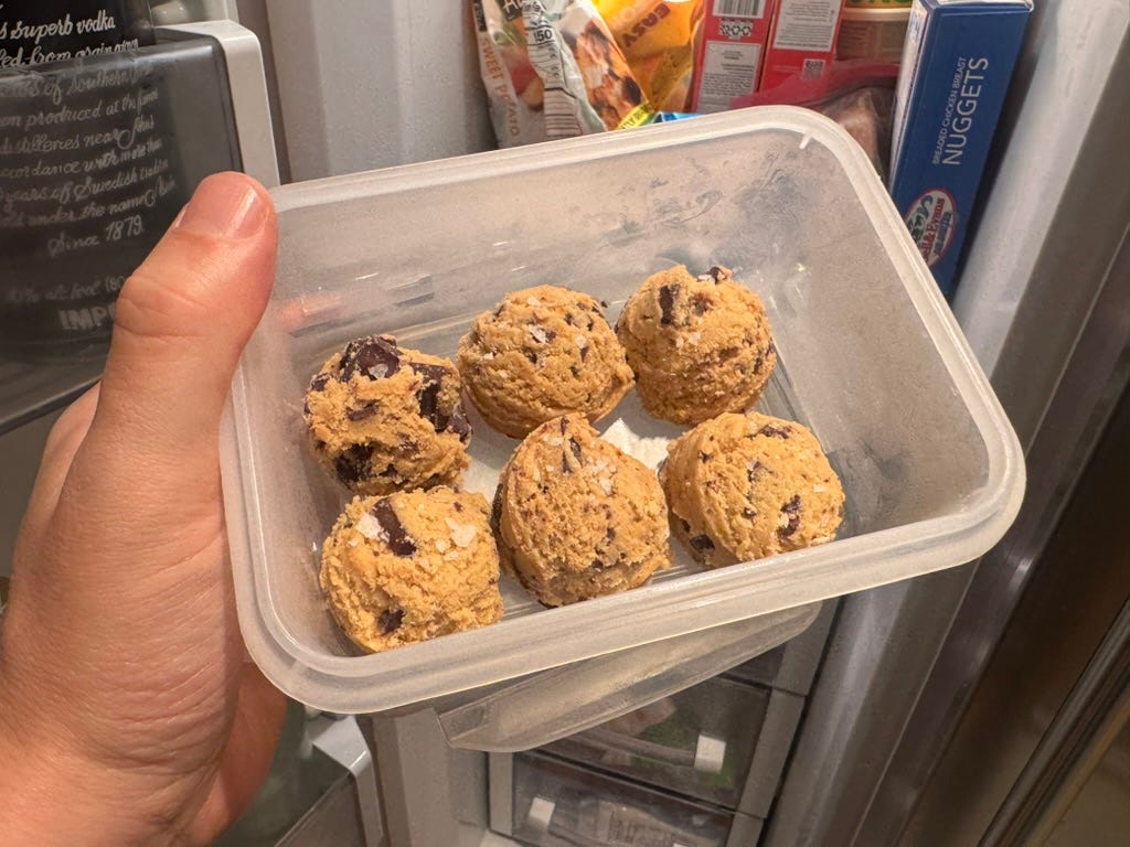 Yet, the show still ran 18 minutes late, a sin for early bedders like Bee and Nick. When they were asleep, I snuck into the freezer for dessert, the cookie dough that Bee brought for dessert.
