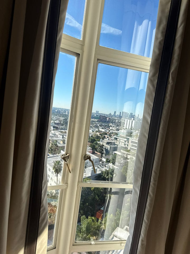 I travel a lot, and whenever possible, I stay at friends’ houses. Hotels can be sceney, and more often than not, my friends have nice kitchens and fully stocked fridges. But this trip was packed with meetings, so I booked a room at the Sunset Tower.