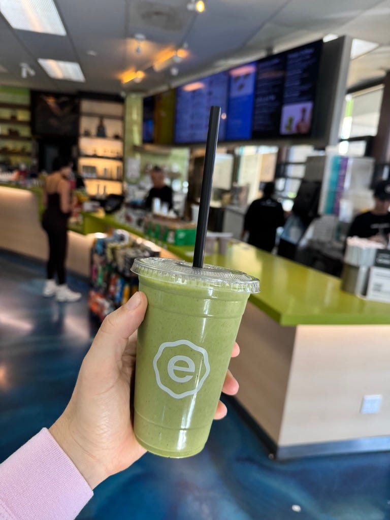 After I worked out, I went to Earthbar for a Green & Lean smoothie. Confession: I have never been to Erewhon. I sort of don’t think I’m cool enough. I’m definitely not rich enough.