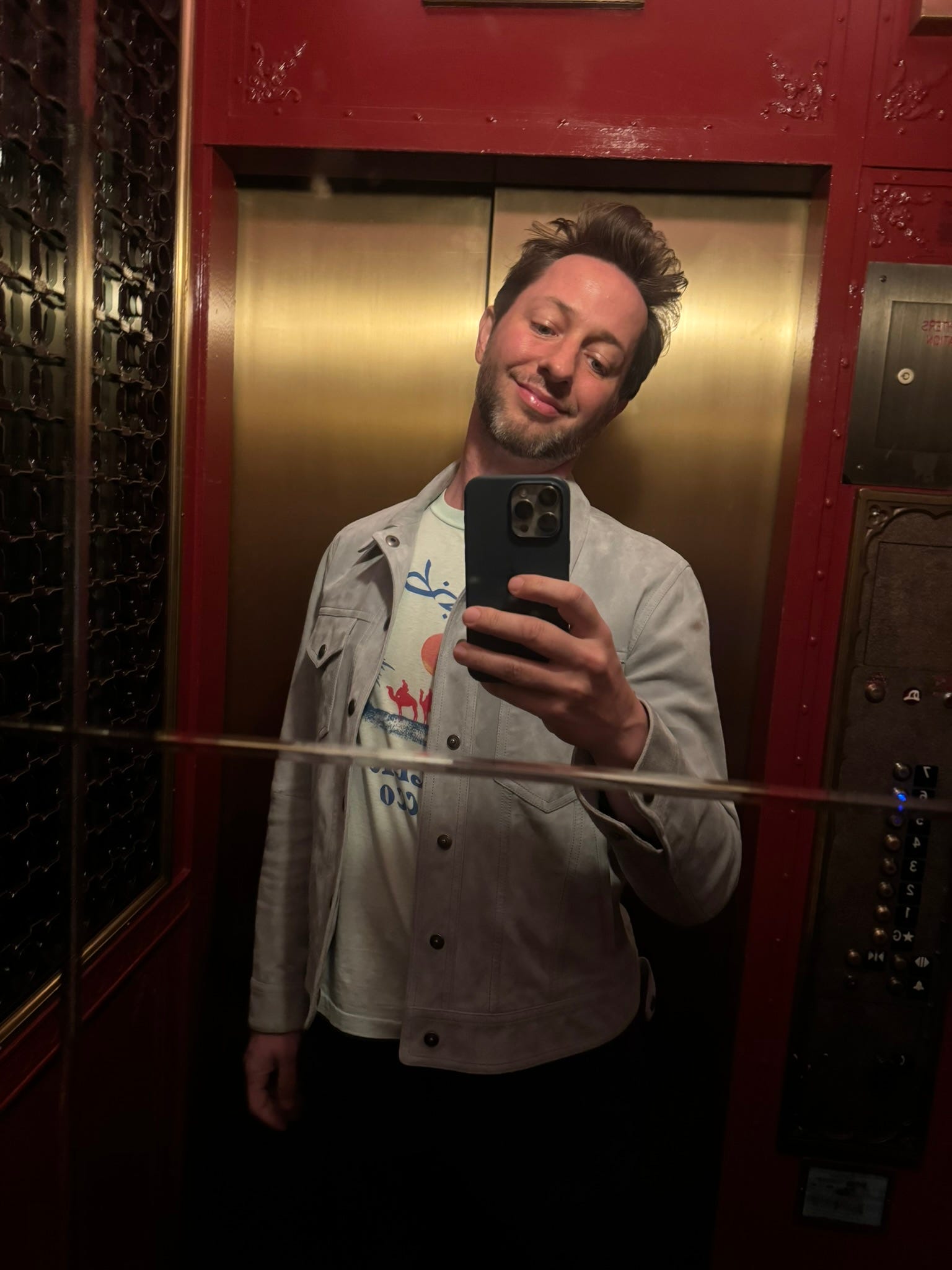 When I got back to the hotel, I remembered I needed to call housekeeping to reattach the button to the jacket I’d worn last night. No joke—when I found out I was sitting next to the hot Russian from Heated Rivalry, the button literally flew off my jacket: